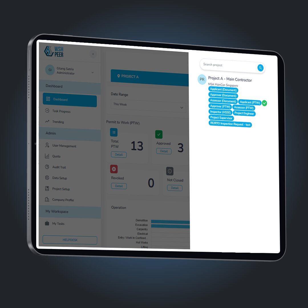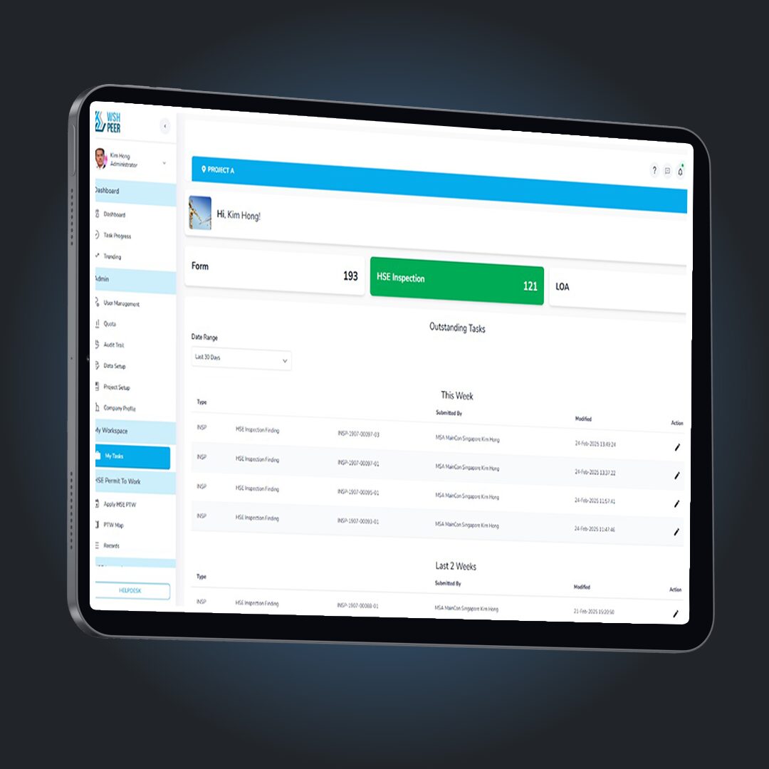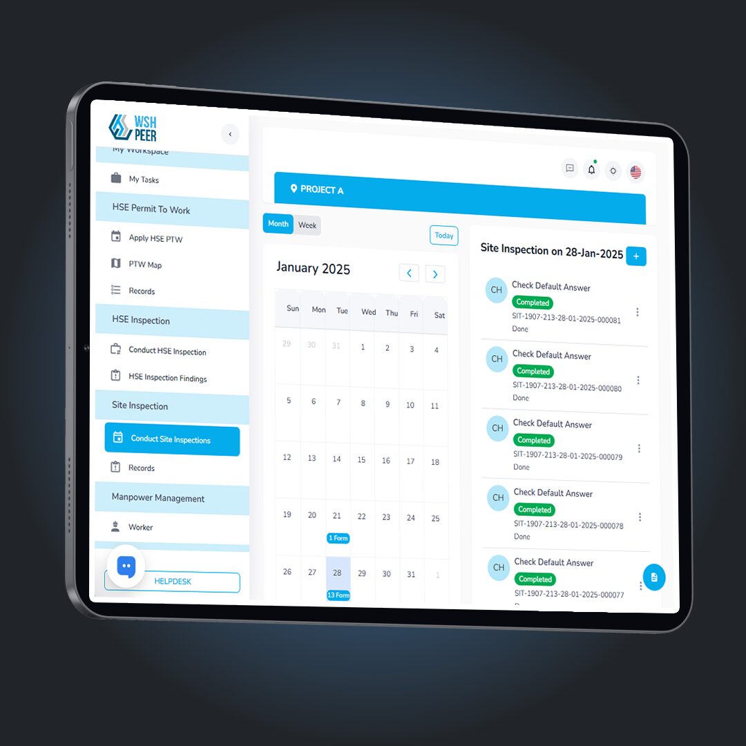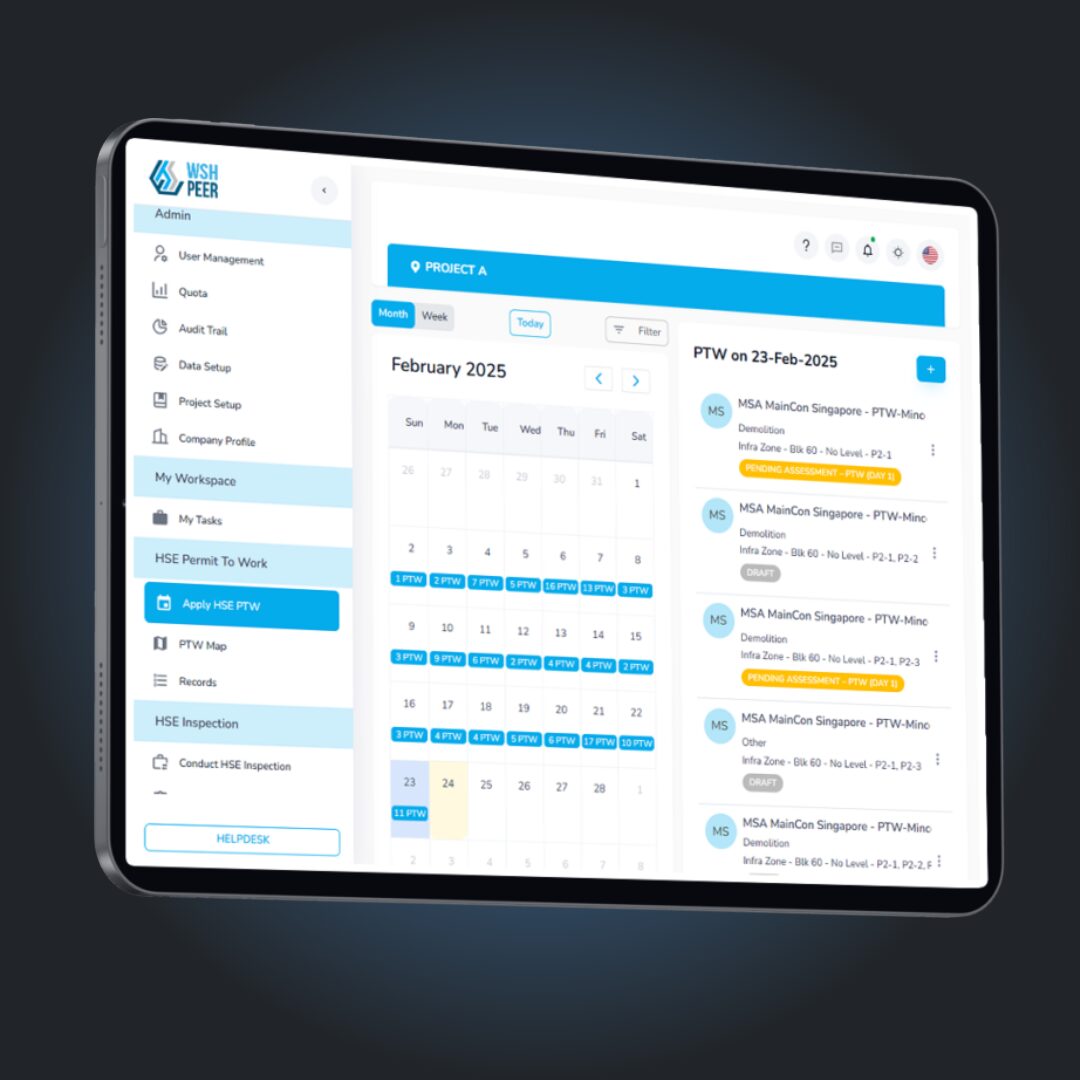 所有功能 工作场所 安全 & 健康 轻松追踪 WSH 文档使用我们的网络应用跟踪工作场所安全文件 简化流程通过简化流程节省时间和资源 完全可定制的表格完全自定义表单模板以匹配您的公司 联系我们的团队 帮助您完成任务的功能 我们致力于让您更轻松地追踪工作场所的健康和安全状况,以便您可以专注于真正重要的事情 安排演示 免费技术支持 健康安全环境工作许可证电子工作许可证查看功能 许可证管理与实时跟踪通过实时跟踪、交互式地图和无缝文档简化许可证管理 简化安全检查通过提供日历视图、轻松的检查管理和批量查找提交来简化安全检查 检查HSE检查查看功能 更好的监控 我们的 仪表板 为更好的监控而构建 一个用于跟踪许可证、工作进度和安全检查的集中中心,具有过滤和分析功能,可实现更好的协调和合规性。 详细了解仪表板 健康安全环境工作许可证 允许 管理 和 即时的 追踪 轻松创建、监控和下载 PTW,确保合规高效。日历视图、公告栏和即时状态更新,让 PTW 处理更快捷、更智能、更轻松。 查看更多 申请 HSE PTW通过实时更新和自动化文档轻松创建、跟踪和管理 PTW 了解更多 交通管制地图项目现场所有有效工作许可证 (PTW) 记录的动态实时可视化 了解更多 PTW 记录无缝跟踪和管理所有已提交的许可证和表格 了解更多 HSE检查 简化 安全 检查 PEER 的 HSE 检查模块通过提供日历视图、轻松的检查管理和批量查找提交来简化安全检查 进行HSE检查 无缝完成检查 学到更多 HSE 检查结果 保持合规和积极主动 学到更多 拿 A 潜行 顶峰 的 我们的 特征 仪表板 跟踪许可证、工作进度和安全检查的集中中心 行政 集中管理功能,确保高效的用户控制、数据监督和系统配置。 工作许可证 通过实时跟踪、交互式地图和无缝文档简化许可证管理 我的工作区 使用“我的工作区”保持井然有序,掌控工作 验证 安全无缝访问,轻松便捷!轻松守护安全! HSE检查 通过提供日历视图、简单的检查管理和批量查找提交来简化安全检查。 实地检查 提交检查报告,通过检查日历监控合规性,并将所有记录集中保存以便于跟踪 RE/RTO 检查 通过管理提交、跟踪发现和安排检查来简化合规性。 显示更多 人力管理 轻松管理您的员工队伍。只需点击几下,即可注册新员工、更新详细信息并批量上传员工数据。 资产 全面掌控您的项目资产!轻松追踪已部署的资产、更新信息并管理维护。 项目切换 轻松在分配的项目之间转换,无需登录和退出的麻烦。 轮廓 更新个人信息、跟踪任务、管理休假安排等。 人力管理 轻松管理您的员工队伍。只需点击几下,即可注册新员工、更新详细信息并批量上传员工数据。 租户注册 简化入职流程,允许新用户通过提供关键的公司详细信息轻松设置帐户 技术支援 立即获得 PEER 技术支持的帮助! 多语言 支持多种语言,包括英语、印尼语、日语、中文(简体)、孟加拉语、西班牙语和泰米尔语 执行 行业 建造 生产 海洋