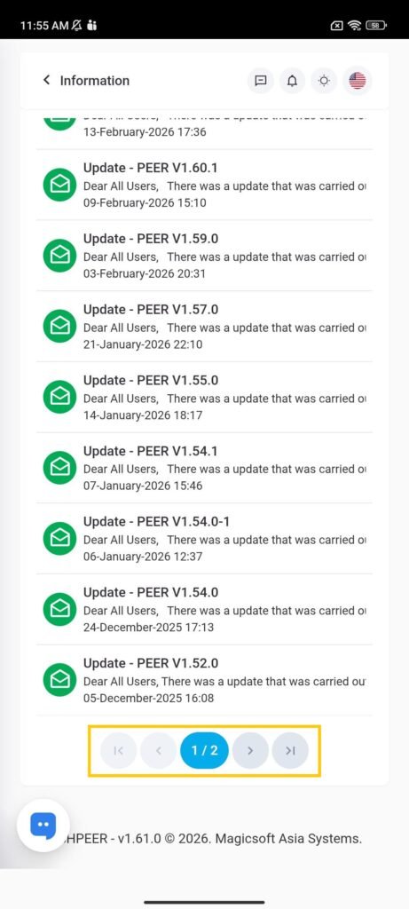 The Information page in mobile view now supports pagination, displaying 10 list per page