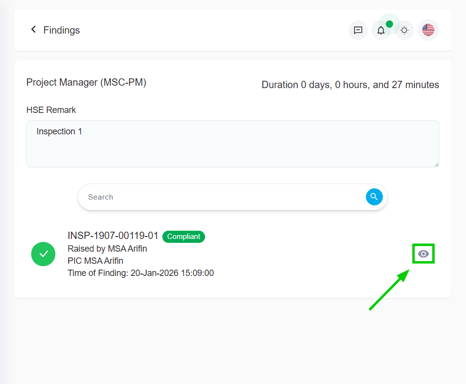 HSE Inspection: Updated layout of “View” button for Findings with Compliant status