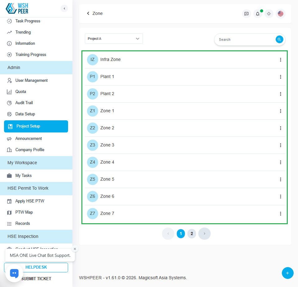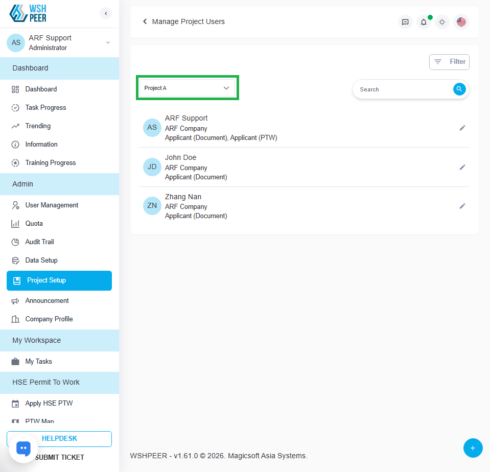 Project Setup: Updated default selected project across multiple menus (Users, Workers, Vendors, Site Inspection Forms, and Permissions)