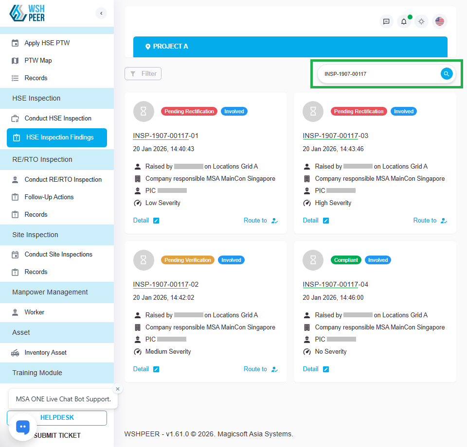 Fixed an issue where the search feature did not work on the HSE Inspection Findings page.