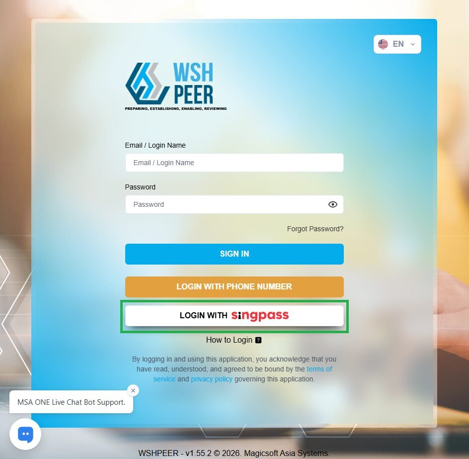 Added the Singpass logo to the ‘Login with Singpass’ button on the Login page.