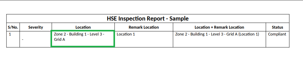 Added a new capability to display “Location” and “Location Remarks” in a single section in the HSE Inspection Report printout.